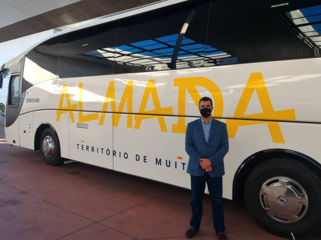 A Câmara Municipal de Almada recebeu um novo autocarro de 55 lugares destinado a apoiar as escolas, clubes e associações do concelho. Já com a nova imagem do Município, a viatura foi batizada de “Cristo Rei”.