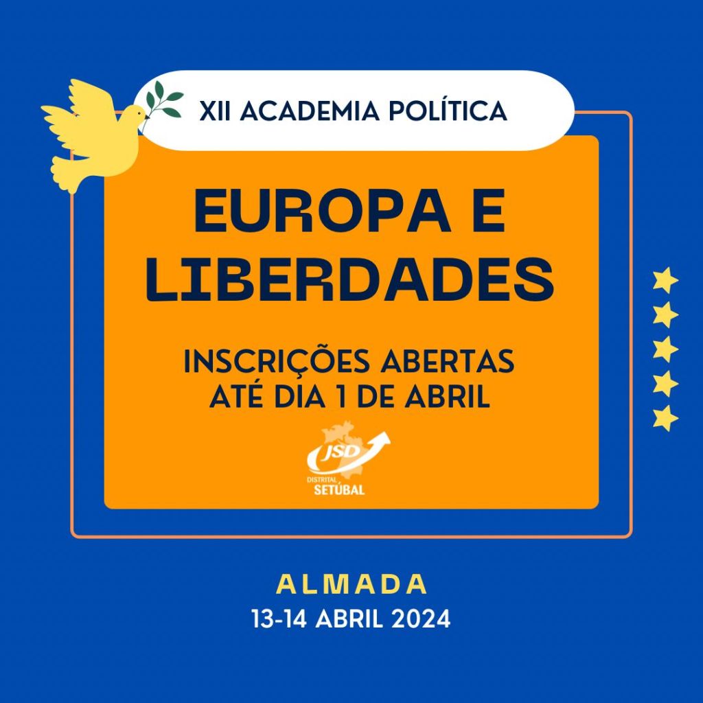“Europa e Liberdades” é o tema da XII Academia Política da JSD Distrital de Setúbal. Decorre nos dias 13 e 14 de abril. Inscrições até 1 de abril.