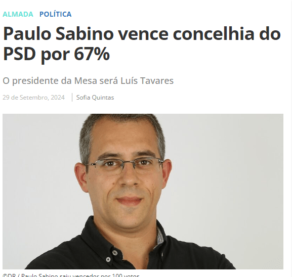 derrotada. O vereador do PSD na Câmara Municipal de Almada (CMA)