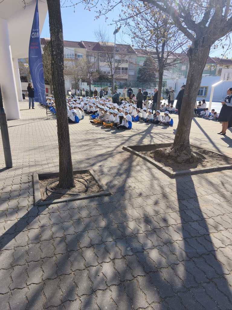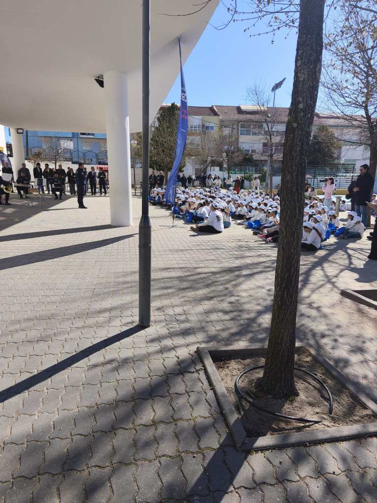 O programa Estou Aqui! Crianças (EAC) foi apresentado à comunidade escolar na Escola Básica n.º1 do Feijó e a Ana Catarina Santos, autarca do PSD no Feijó, esteve presente. É um projeto pioneiro da PSP, em colaboração com o Governo, a Fundação MEO e outras entidades públicas e privadas. Uma pulseira azul pode ser pedida para uma criança, para que a possa encontrar caso se perca.